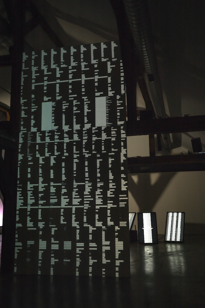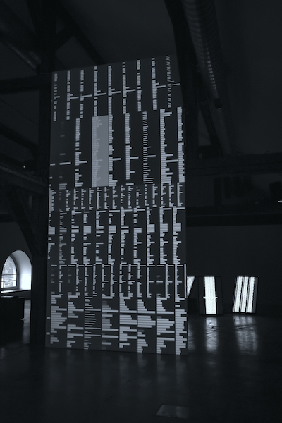 Cryptocurrencies and their environment are a good field for transdisciplinary and unorthodox research and experiments on topics that somehow resonate strongly with current post-technological updates and their determinants: obscured layers of the system, big data, greed studies (especially in the context of a climate catastrophe and taking into account the energy expenditure needed to support the cryptocurrency circulation), autonymization of intelligent information processing systems enabling behavior prediction or rendering. The work processes massive amount of data in real time and presents it in the same - massive - way. It overloads the senses of the recipient by emitting audio and visual information in quantity and dynamics causing phenomena occurring when touching perceptual boundaries. Hypnagogic patterns allow the assimilation of relationships between data in an intuitive way - some regularities in the data can only be observed by using such a method (maybe recalling old, but still "high touch" category introduced by John Naisbitt in late nineties would be reasonable here). A reference to aleatoricism that appears in the name of the work applies to both musical and visual components. In the general consciousness, the term is most associated with musical ideas developed by Pierre L. J. Boulez, but it is also used in other contexts, e.g. in architecture (Sean Keller and Heinrich Jaeger created the term "aleatory architecture"). In "Aleastock 2", aleatoricism appears in meaning which was proposed by composer Witold Lutosławski - he uses the term "controlled aleatoricism" to describe introduction of mechanisms (among others: removing divisions between measures) at the score level to disturb - in practice in a similar way to the Reich's phase shift - the time synchronization of events in selected places of musical composition. In "Aleastock 2" graphical representation of sonificated data maintains a reference to time in the horizontal coordinate axis (in other words: it's a timeline) - and thanks to this, it allows not so much the use of similar procedures as described above, but it causes that similar mechanisms occur naturally due to the very nature of the data being processed (the same applies to the polymetric rhythmic structure of the work). The visual perceptual effect of experiencing "Aleastock 2" brings references to op art. Flat data patters transform into spatial structures - this is obviously an optical illusion, which in this particular case allows intuitive capture of relationships in a large set of data. It is worth mentioning here that optical illusions - used extensively in op art - have recently gained a new field of application: they serve cryptography to protect information from being taken over by non-human entities, especially intelligent agents scanning the global space of information exchange: optical illusions (typically based on various specific features of the human visual perception apparatus that are usually ignored in digital models) are often illegible to AI-based or similar pattern-recognition systems. Aleastock 2 is the successor and continuation of the concept initiated in the Aleastock interactive installation created in - taking on the stock market data on companies in the technology sector. The premiere of the "Aleastock" took place during the "Field of Vision" – "Field of Hearing" / Lutoslawski Festival at Centre of Contemporary Art "Znaki Czasu" (Toruń / Poland / Nov 15-17 2013) and was curated by Krzysztof Białowicz. * * * Video documentation from the Point Nemo by Mira Boczniowicz courtesy of the WRO Art Center.