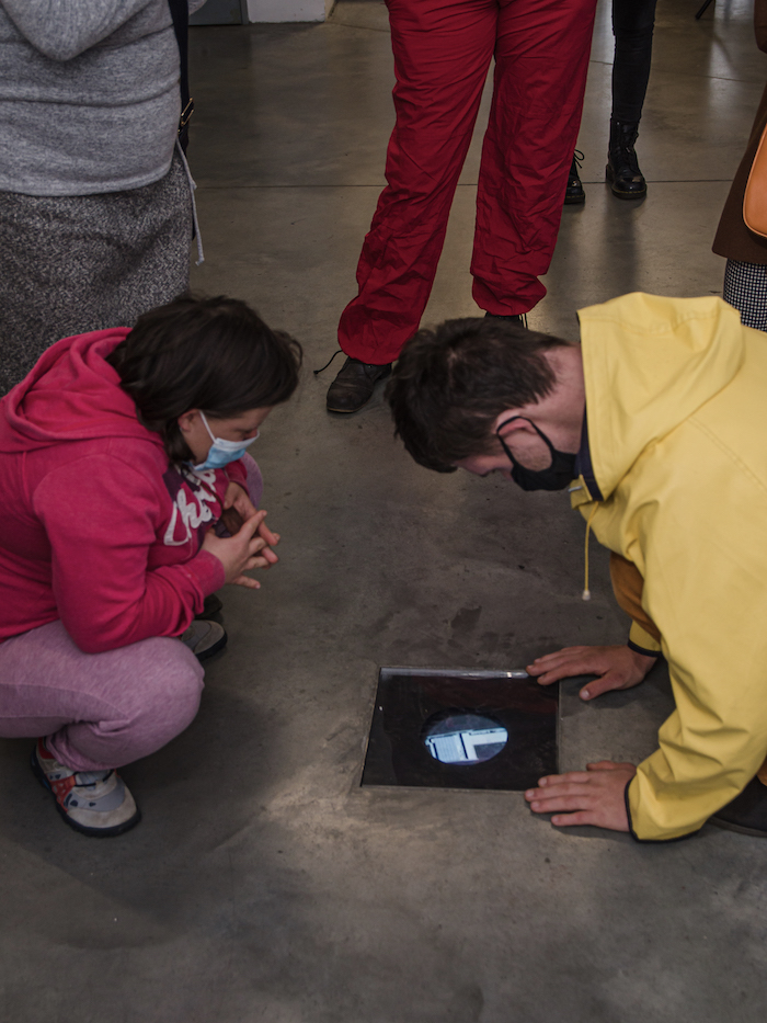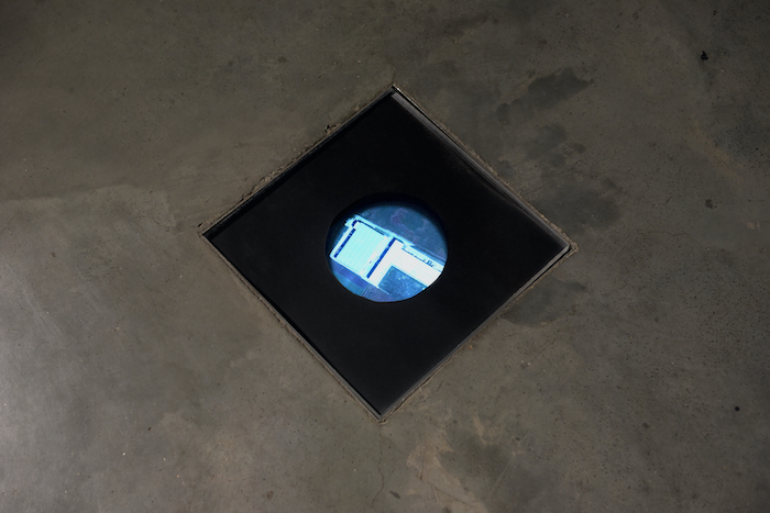 A small screen in the floor shows a satellite image of an Amazon logistic center near Wrocław. Both the perspective and the observation tool are well warranted, as Amazon is a global company which is powerful enough to start its own space program (Project Kuiper), and Jeff Bezos, its founder, main shareholder and CEO, is one of the wealthiest people on the planet. The mechanisms of monitoring, efficiency assessment, and pay determination at this and other Amazon sites raise serious controversy. The organizers of last year’s fundraiser for the strike fund of Amazon’s Polish workers (the OZZ Inicjatywa Pracownicza/Workers’ Initiative Trade Union) listed the following factors as boosting Poland’s attractiveness to Amazon and, at the same time, as exacerbating global inequalities: geographical location, anti-employee legislation (e.g., constraints on the right to strike), cheap labor force, and pay determination based on the statistics of local blue-collar wages, rather than on the profit they produce. * * * Video documentation by Mira Boczniowicz courtesy of the WRO Art Center.